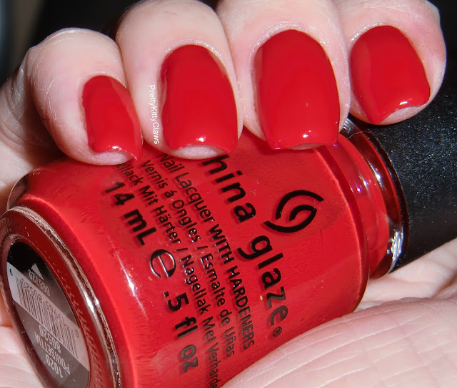 I started off with China Glaze Poinsettia. I know this isn't a complete untried to me as I used it in my Cadbury's Creme Egg mani (here) but I've never used it for a full mani and I really think it deserves it.